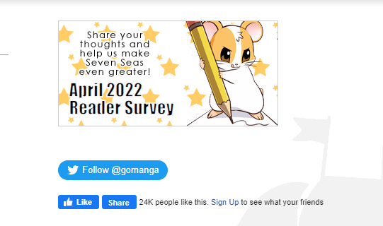 Librarians, feel free to refer publishers to titles on this list that you think would resonate with your children! There’s actually a way you can reach out to Seven Seas to encourage this, through their monthly reader survey on their site! You’ll find it on the upper right-hand corner of the home page: